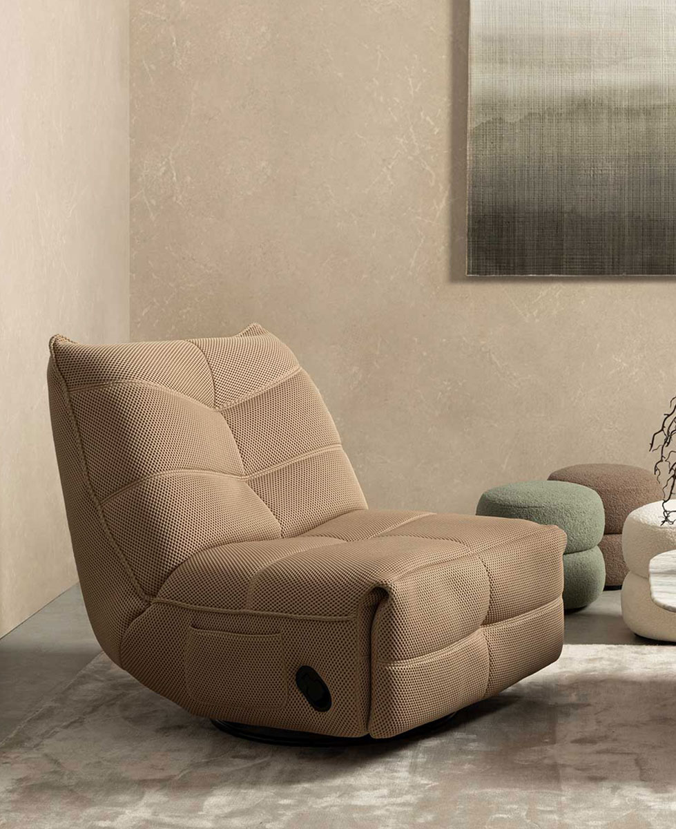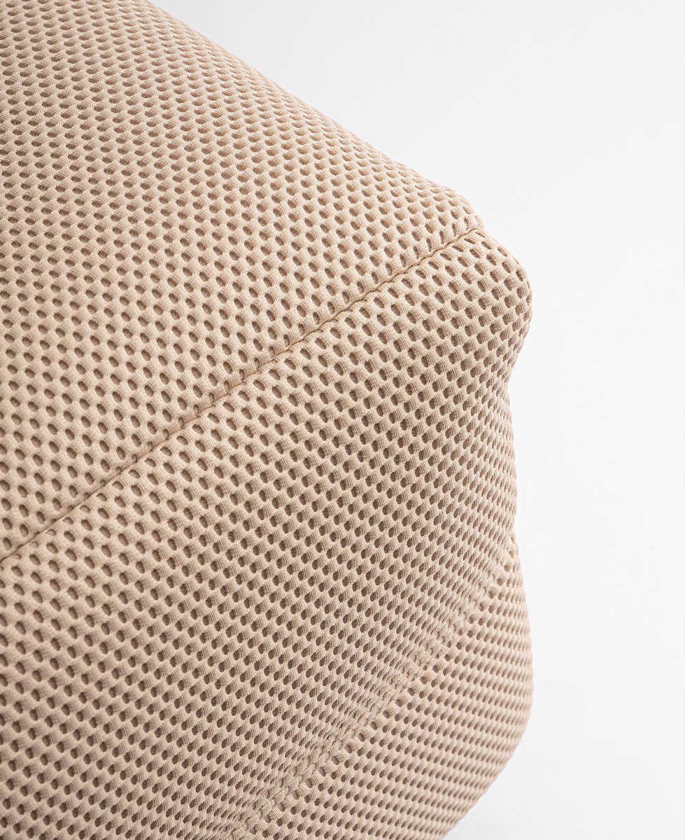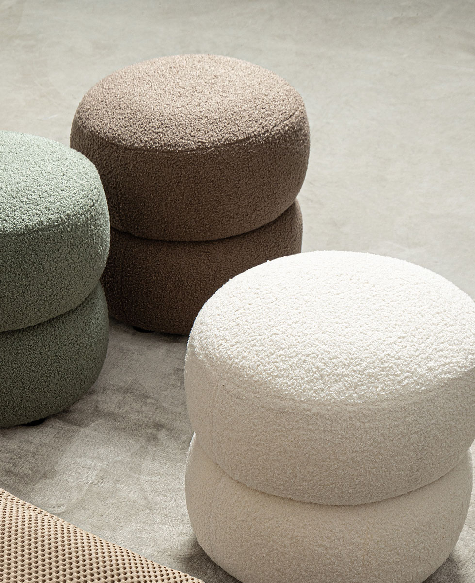Gitta, una sintesi perfetta tra design moderno e funzionalità: il rivestimento in poliestere effetto tessuto Techno 3D dona un tocco contemporaneo e sofisticato. Accanto a lei, lo sgabello Gabby completa l’esperienza: essenziale, elegante con un rivestimento effetto bouclé che richiama atmosfere calde e materiche.